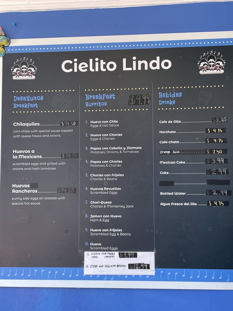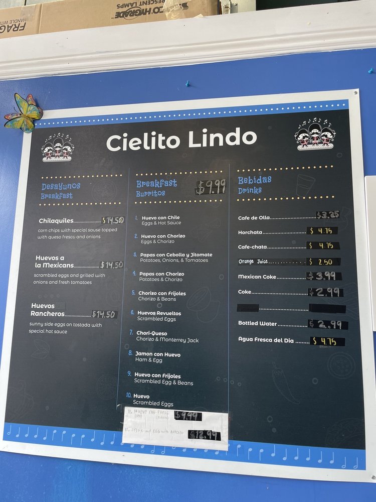 Introducing the menu at Cielito Lindo, located in San Francisco, CA, this Mexican restaurant offers a diverse range of options, including pambazos, quesabirrias, chilaquiles, and tacos. With a focus on authenticity and flavor, customers rave about the juicy and flavorful quesabirria tacos, crispy tortas, and perfect chilaquiles. The restaurant also caters to various dietary needs with vegan options available. While prices may be on the higher side, the generous portions leave diners satisfied. The casual atmosphere, ample seating, and outdoor dining make it a popular choice for groups or a quick lunch. Despite some concerns about bathroom cleanliness, Cielito Lindo's vibrant and colorful space, along with their top-notch dishes, continue to draw in crowds appreciative of a true Mexican dining experience.